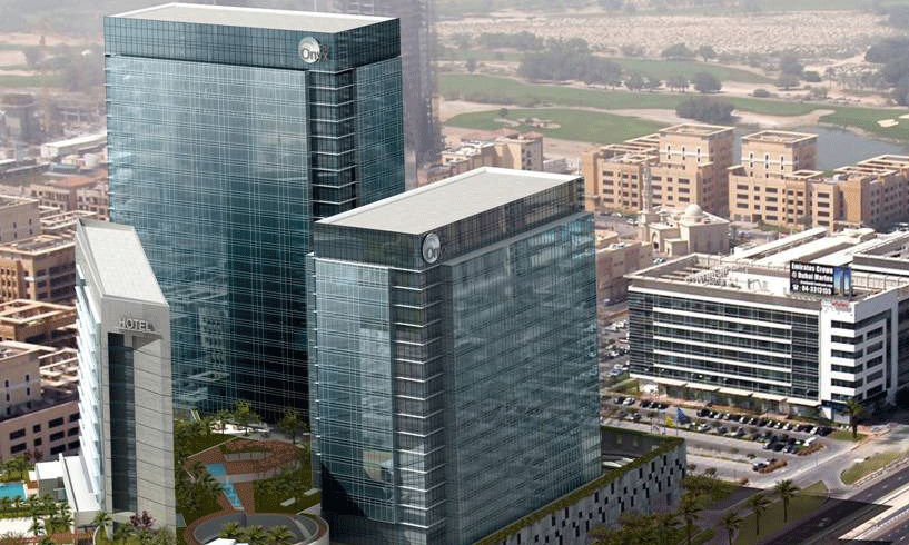 Located near The Greens and Emaar Business Park, The Onyx is a Class-A, three-tower mixed-use development consisting of two office blocks and one residential building, along with a four-star, 210-room boutique hotel and three-storey podium of restaurants and retail shops. The project will also accommodate 1,400 parking spaces.