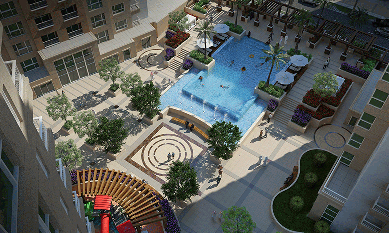 The towers have a common podium housing all the amenities. Each tower has its own dedicated drop-off zone, lobbies, 24-hour reception and concierge, and integrated security system.