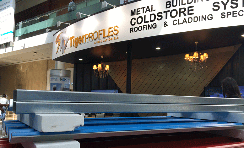 Speaking about the products being exhibited at The Big 5, Rosy Salameh, Assistant CEO of Tiger Profiles & Insulation said, “Our product range includes single skin roofing and cladding, sandwich panels also known as insulation panels and standing steel roofing which has been used in this hall at the Trade Centre.