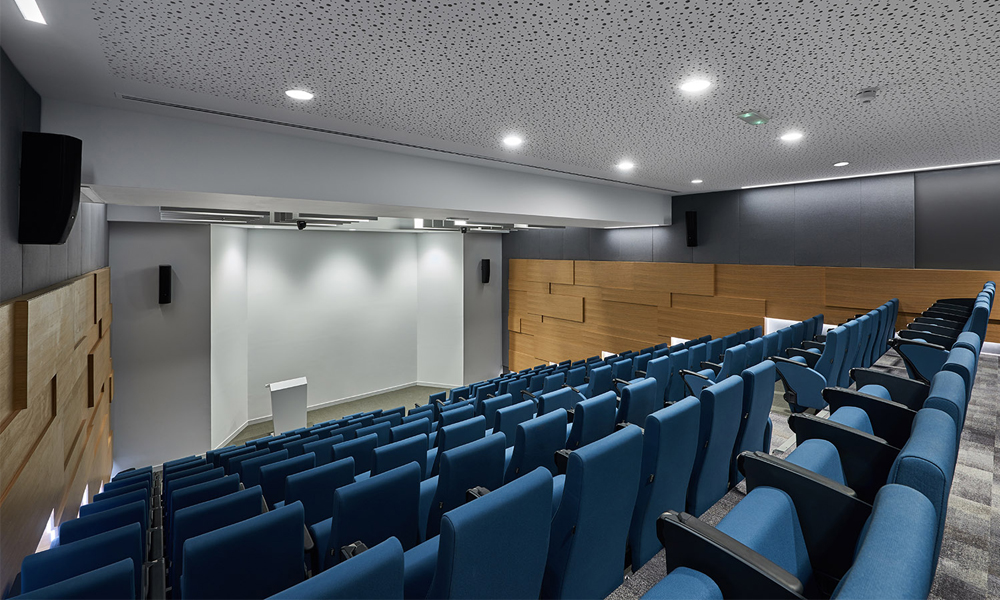 According to GAJ, the existing building was stripped back to its shell and insulation was added into its walls and roof to improve the building’s thermal rating. The now more energy-efficient building includes a 140-seat lecture hall and nine classrooms with a teacher training space, as well as informal study pods with writing walls and desks.