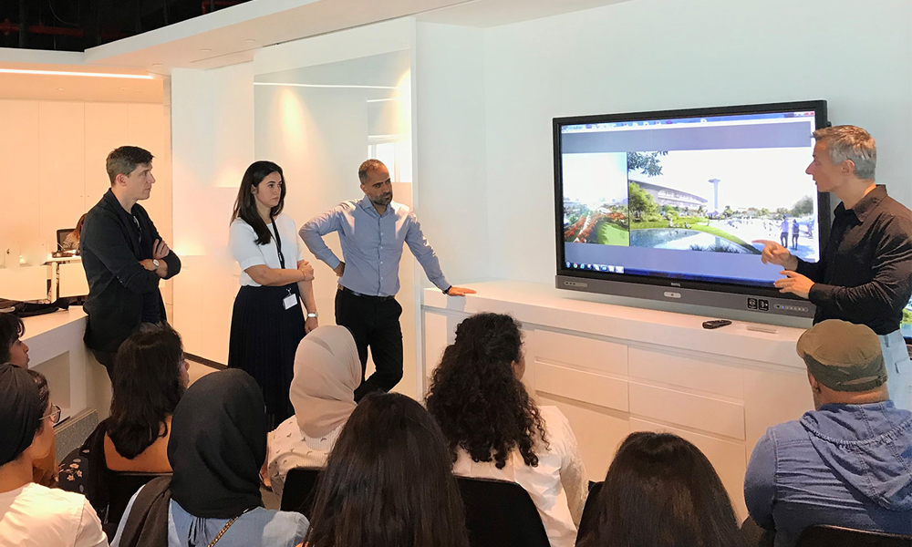 As part of the process, a design studio of senior architecture AUS students visited Arada’s headquarters to present their research, concepts and prototypes. They were accompanied by associate professor Jason Carlow from the College of Architecture, Art and Design, who is coordinating the partnership with Arada.