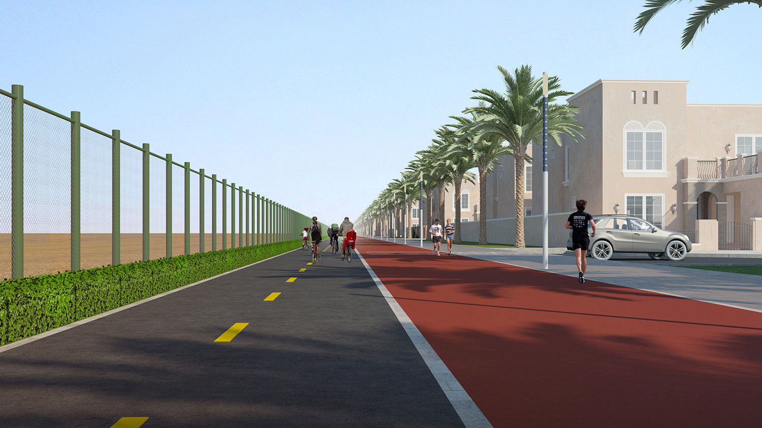 According to a statement from the master developer, the bike and running tracks will run side-by-side in a loop around the perimeter of the 1,500 villa community.