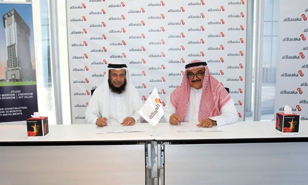 Al Baraka Islamic Bank (AIB-Bahrain) has signed a property financing agreement with the Kadi Group, which will see the bank provide property finance solutions for potential and existing buyers of units in the Burj Kadi residential project.