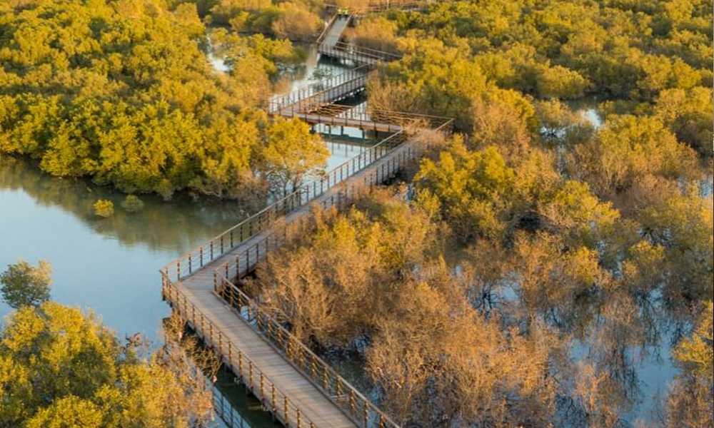 A series of pedestrian boardwalk routes have been installed, providing access adjacent to the mature mangrove forests and tidal lagoons of Jubail Island, GHD explained, adding that the 2.6km boardwalk navigates its way through a variety of ecosystems, including mangrove habitat, intertidal mudflats, salt marshes, lagoon channels and distinctive sandstone geological formations known as zeugens.