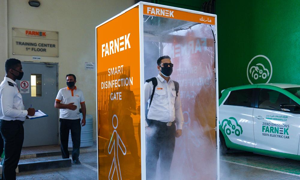 UAE-based facilities management (FM) specialist, Farnek, has installed a sanitisation gateway which will disinfect all staff upon leaving and returning to their accommodation centres.
