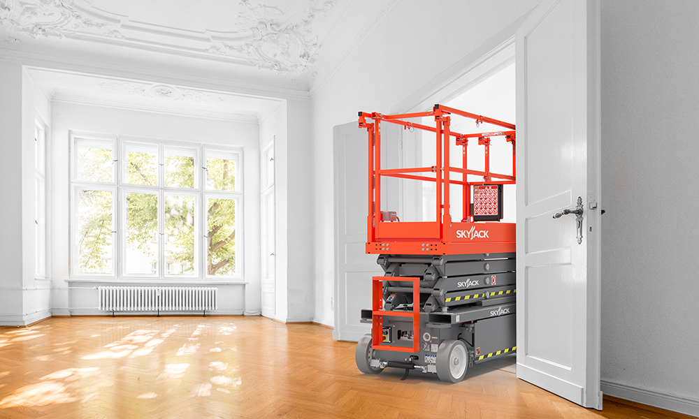 Powered access major Skyjack has fitted its SJ3219 ANSI model with a standard new system that allows the top of the platform rails to quickly fold down and enable access through standard doors and other areas with restricted space.