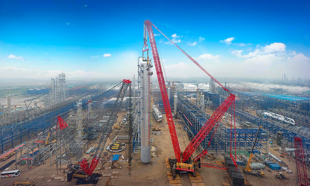 Sany’s new 4,000t lattice boom crawler crane, the SCC40000A, executed its first project last month when it lifted the fourth propylene splitter tower into place at a $2.3bn petrochemicals complex in northern China.
