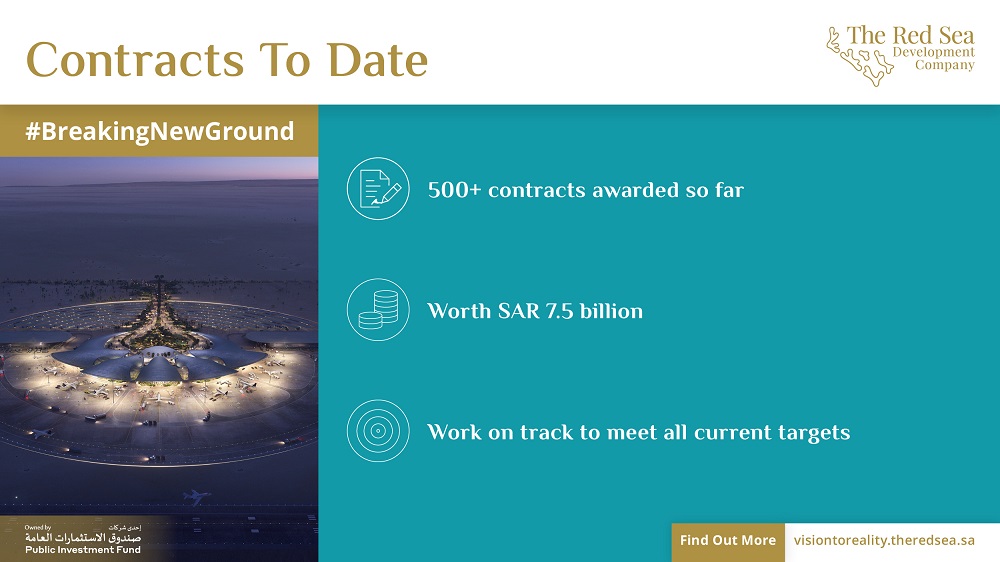 The Red Sea Development Company (TRSDC) has revealed it has awarded more than 500 contracts to international and local firms – totalling around $2 billion – since its flagship regenerative tourism initiative, the Red Sea Project, was announced in July 2017.
