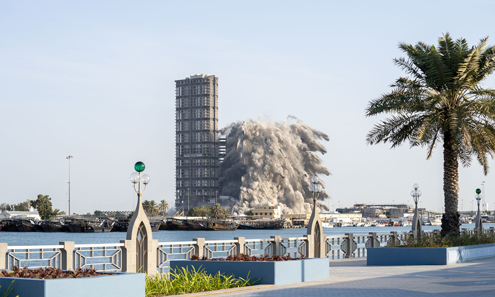 Joint coordination and cooperation was made with all concerned parties to ensure a smooth and safe demolition event. The Mina Zayed area was evacuated in cooperation with Abu Dhabi Police.