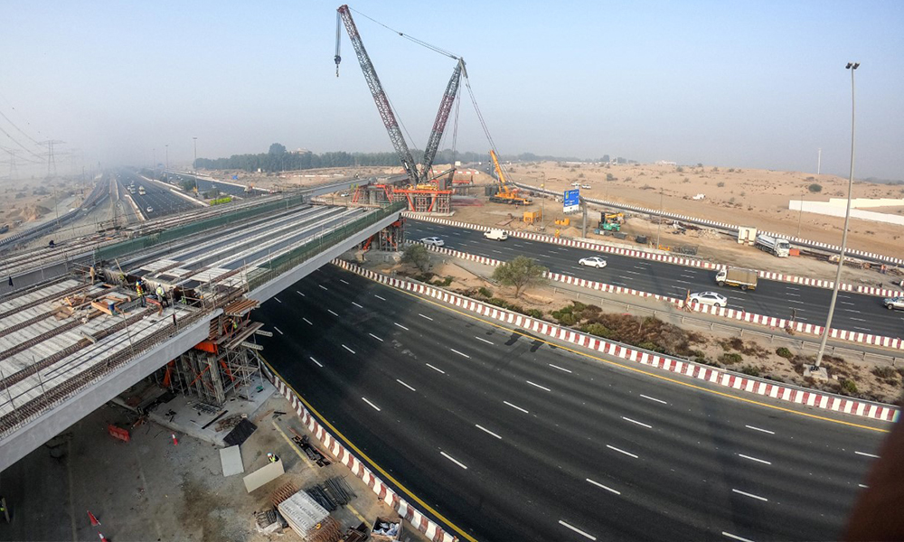 According to Al Tayer, nearly 60% of the bridge leading to Al Awir has been completed, following the installation of precast bridge parts across Emirates Road in the direction of Abu Dhabi-Sharjah.