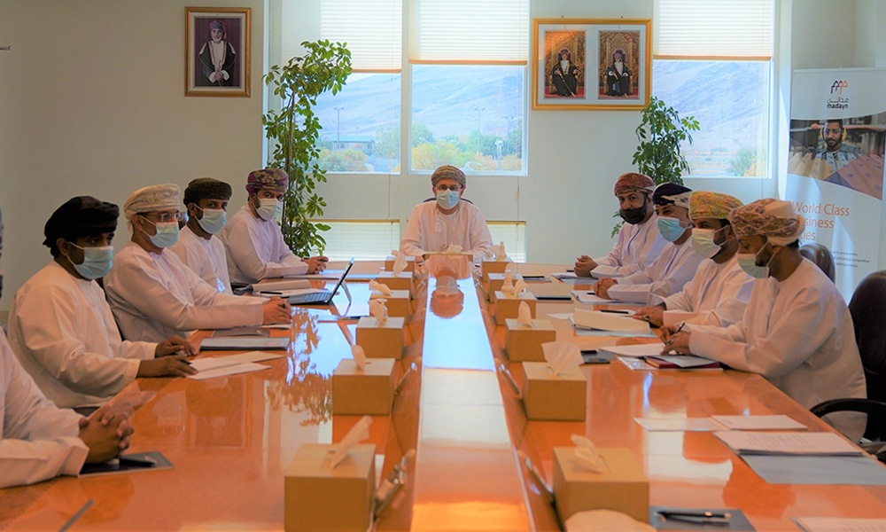 The meeting was held under the chairmanship of Madayn CEO Hilal bin Hamad Al Hasani and reviewed several topics related to ongoing projects that are being implemented by Madayn including the Facility Building. The meeting also highlighted major indicators and commercial movement witnessed by Al Mazunah Free Zone since the beginning of 2021.