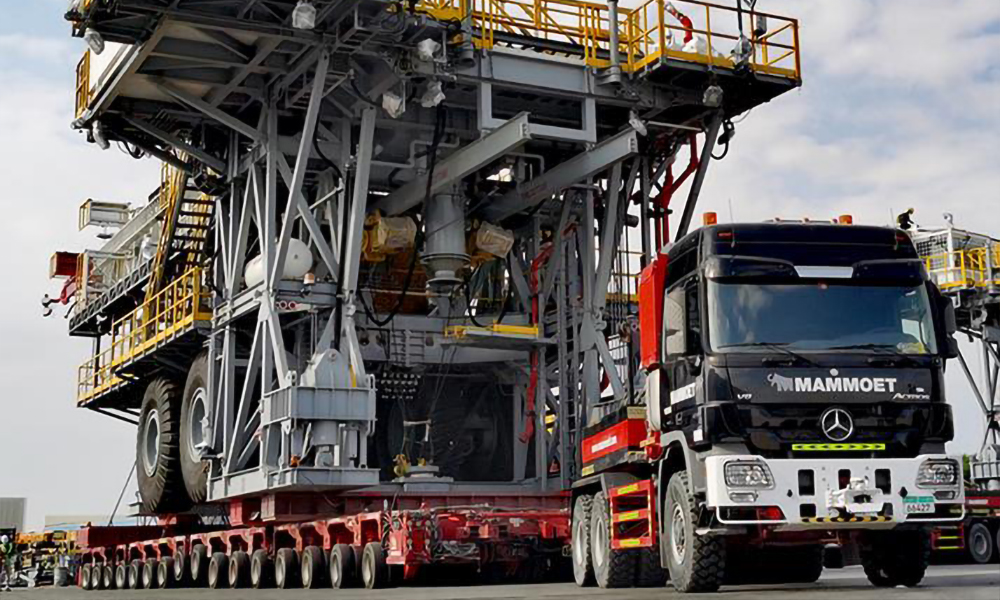 Mammoet has transported two pre-assembled onshore oil rigs and accessories, each weighing up to 471t, by sea and land from the UAE to Oman under a contract by the sultanate’s Khimji Ramdas Shipping (KRS).