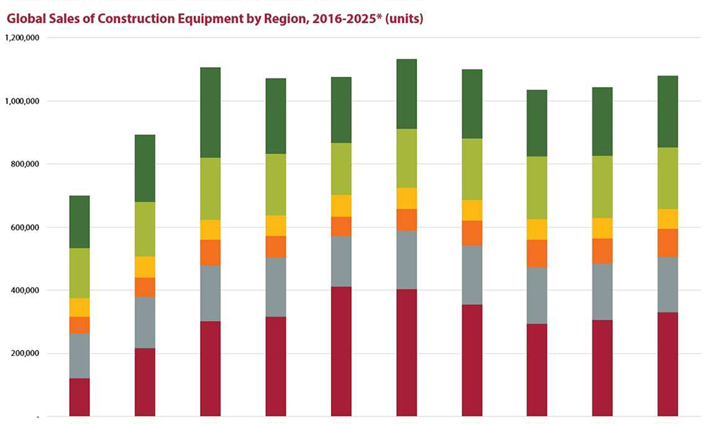 A new report from specialist market research company Off-Highway Research projects sales of construction equipment to hit $110bn globally this year, with expected unit figures of 1.13 million.