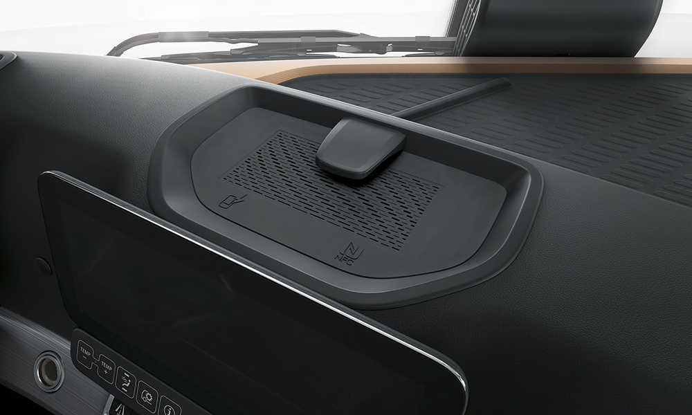 Ensures that the battery of the mobile phone is always charged without a connecting cable which can prevent the driver or co-driver from tripping over.