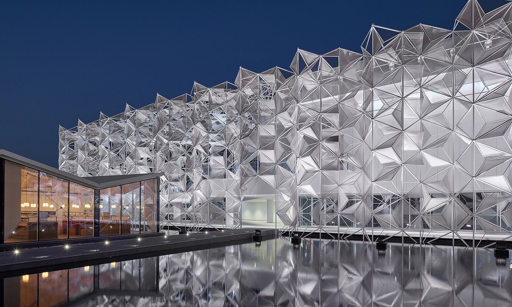 Our pavilion is a giant jigsaw puzzle; we used this methodology whereby materials can be modularised without any hiccups. The façade, which is the major part is the structure is a collection of thin poles and joint system to fit the paper-like membranes. This mode meant it could be constructed efficiently and dismantled quite easily as well.