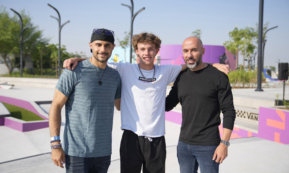 Joining Keegan Palmer to launch the park were HRH Prince Khaled bin Alwaleed bin Talal, Vice Chairman of Arada, Ahmed Alkhoshaibi, Group CEO of Arada, Sabatino Aracu, President of World Skate, the global governing body for skateboarding and a number of other officials.
