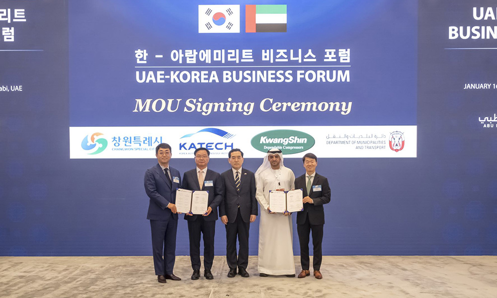 According to the DMT, the two MoUs were signed on the sidelines of the UAE – South Korea Business forum held in Abu Dhabi on 16 January. Representing the Abu Dhabi Government, the MoU with Changwon City was signed by His Excellency Falah Al Ahbabi, Member of the Abu Dhabi Executive Council and Chairman of DMT, and Hong Nam-pyo, Mayor of Changwon City, Na Seung-sil, President of Korea Automotive Technology Institute, and Kwon Whan-ju, CEO of Kwangshin Machinery Company while the MoU with KOTI was signed between His Excellency Al Ahbabi and Jaehak Oh, President of KOTI.