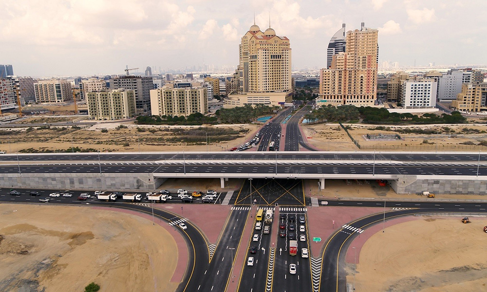 The project works included improving the entrances and exits of Sheikh Zayed bin Hamdan Al Nahyan Street by connecting with the intersection of Dubai-Al Ain Road, widening the Street to four lanes in each direction in a sector extending three kilometres, and constructing two 120m bridges at the intersection of the Dubai Silicon Oasis, comprised of four lanes in each direction.