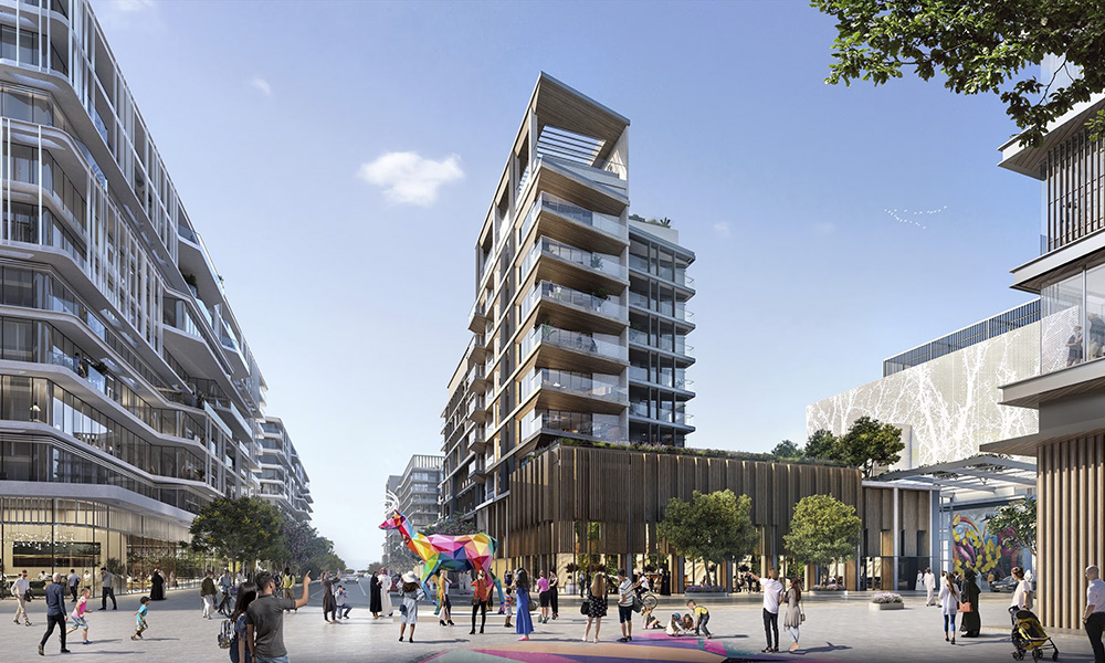 Buildings will be oriented to maximise shade and reduce heat, with additional cooling from water features and significant emphasis on landscaping and planting selection.