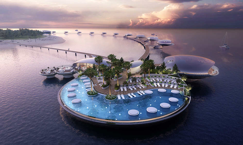 Designed by Killa Design, the design of the resort centres around reflections of nature. Each space has been designed to flow with its environment, with the stainless steel villas reflecting the colours and surface patterns of the ocean and the intense colors of the sky as they change throughout the day. The overwater orbs are cantilevered over the water, which creates an effect of a string of pearls levitating above the water, the statement pointed out.