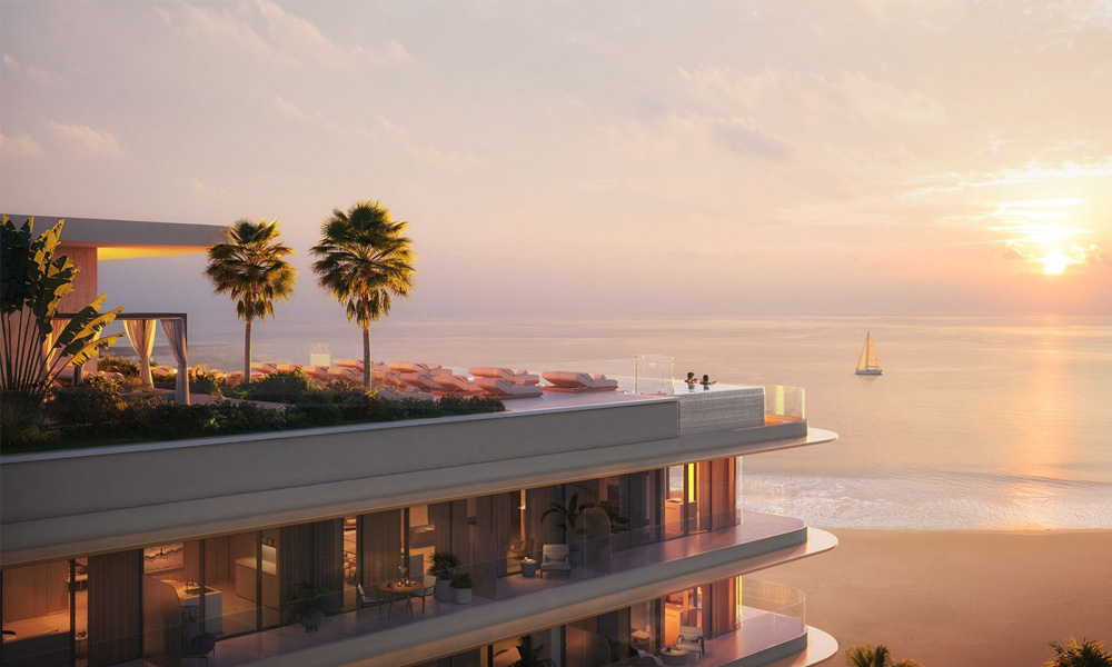An architectural form inspired by the natural curves of the island, Soléva will blend material sophistication with functionality to create spaces that flow with their surroundings. Soléva Beach Residences will feature two basements, a ground floor, and eight upper floors. The 232 residences and one retail unit comprise 111 studios, 101 one-bedroom apartments, and 20 two-bedroom apartments, all with private pools.